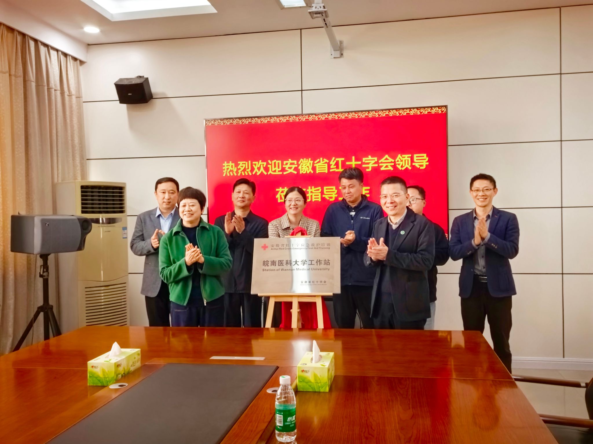 随后,姚应水与高青琳共同为“安徽省红十字应急救护培训皖南医科大学工作站”揭牌,标志着工作站正式启用。