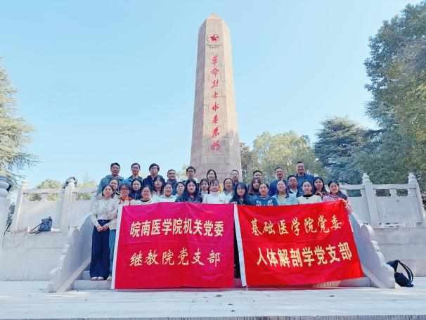 为深入学习贯彻党的二十届四中全会精神,深刻领会全会精神内涵,推动党建工作与红色教育深度融合,人体解剖学党支部联合校机关党委继教院党支部于11月16日赴繁昌区烈士陵园和繁昌博物馆开展“学全会精神·聚共建合力”主题党日共建活动。