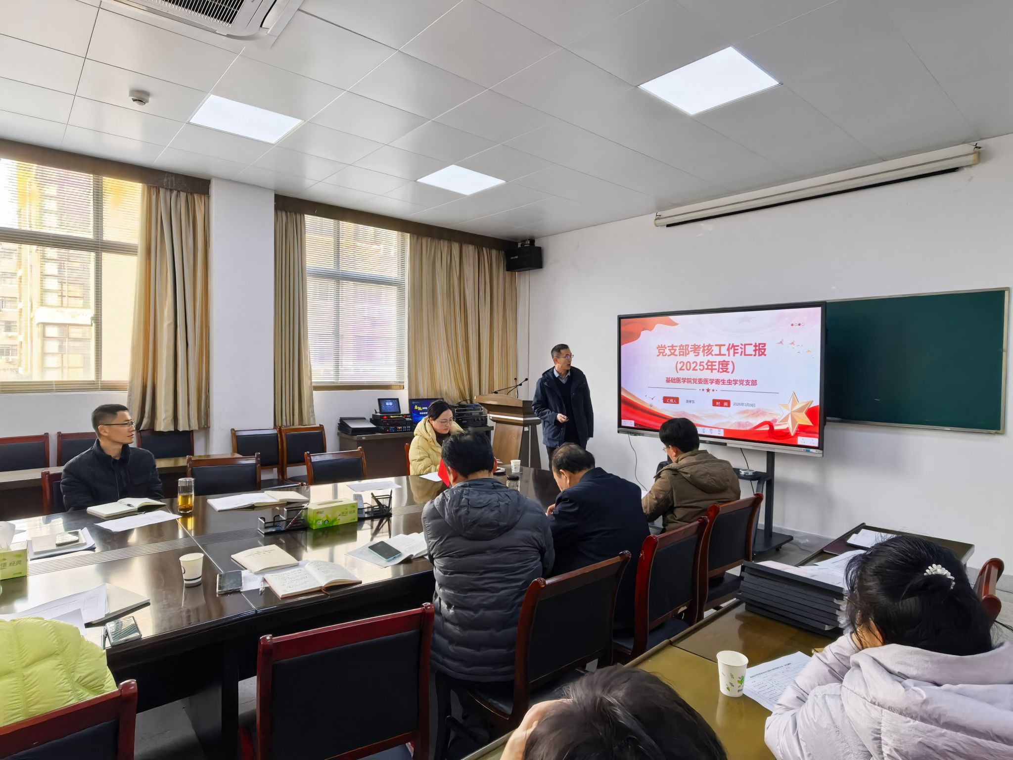 为深入学习贯彻习近平新时代中国特色社会主义思想和党的二十大及二十届历次全会精神,全面压实基层党支部党建工作责任,检验党支部书记履职成效,3月9日下午,学院党委召开2025年度党支部书记抓党建述职暨党支部工作考核会。学院党政领导班子成员、党委委员、各党支部书记和群众代表参会,会议由学院党委书记马旭明主持。